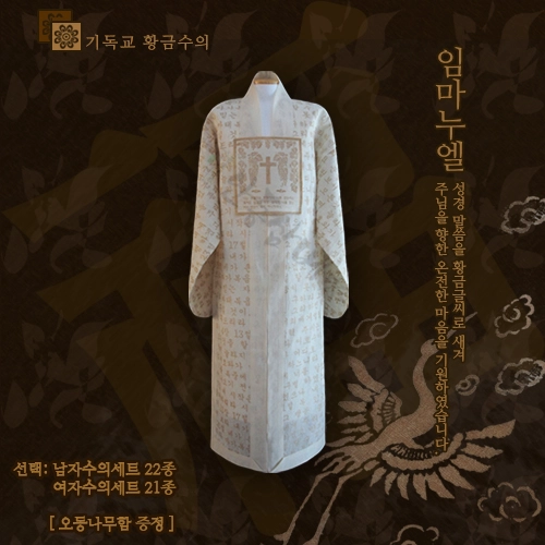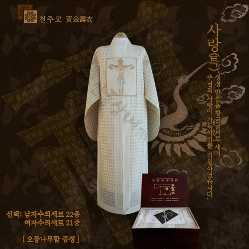 불경 황금수의와 성경 황금수의는 본사가 취득한 '특허 제0430862호', '디자인등록 제30-0608482호', '디자인등록 제30-0600820호'에 의거하여 본사만이 제작 판매할 수 있습니다. 상조, 장례식장, 포교원, 지하방 등에는 일체 공급하지 않습니다. 상조,장례식장,포교원,지하방등에서 불경황금수의와 성경황금수의로 판매되는 제품이 있다면 조잡한 가품이니 유의하시기 바랍니다 특히, 포교원에서 불경 황금수의를 구매하신 분 중(2019년 9월 이후) 구매영수증과 보증서가 있으신 분은 본사로 연락주시면 사례하겠습니다. |